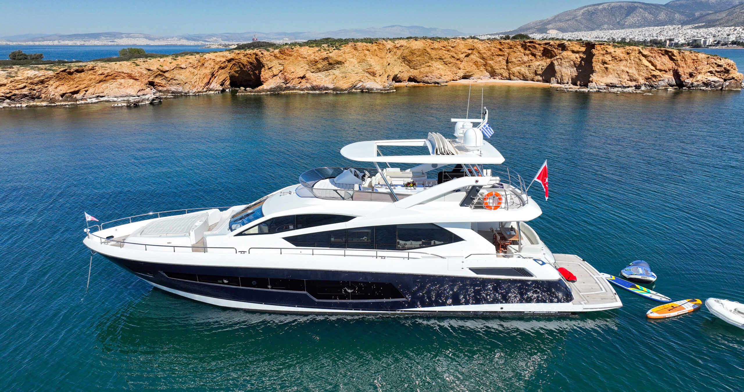 Motor yacht GRACE XI is an immaculately presented Sunseeker flybridge yacht built in 2014 and refitted in 2025. With a length of 23.02m (75' 6") she makes the perfect choice for families looking for a charter yacht for up to eight guests.