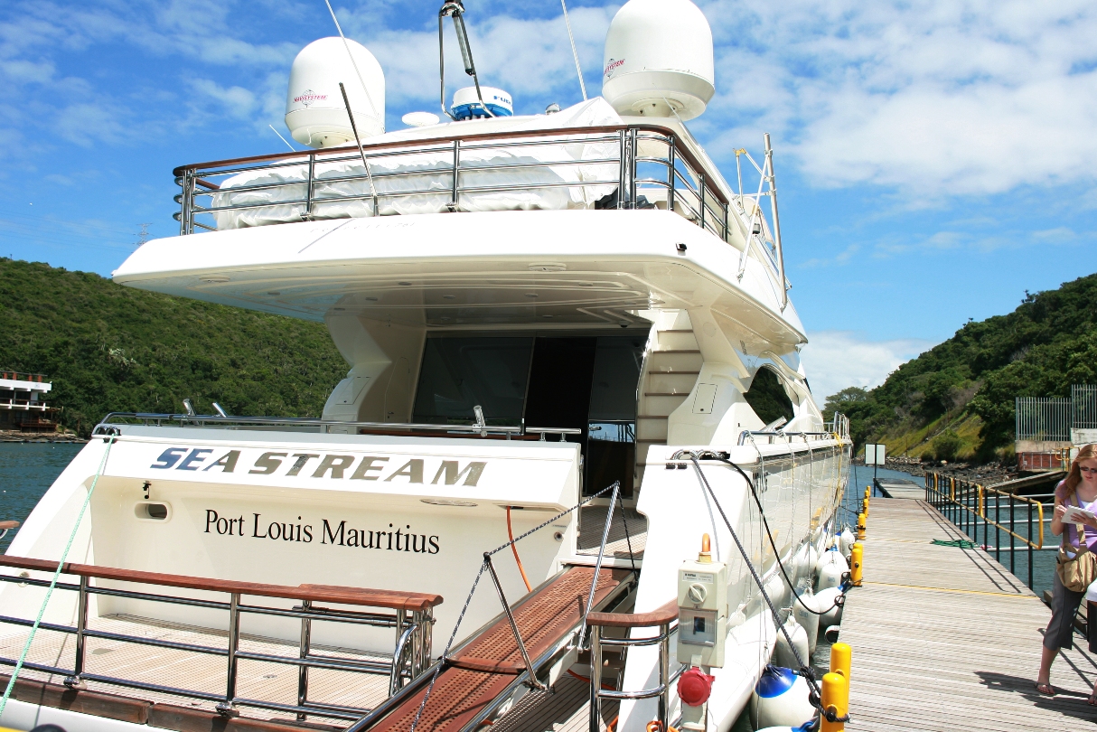 Luxury Motor Yacht SEA STREAM is the fastest and sleekest luxury crewed yacht now available for charter in the Seychelles, year round. This 76ft motor yacht was built in Italy in 2006 by the Ferretti shipyard. She is built to standard including all factory extras such as anti roll stabilizing gyros, exclusive to Ferretti yachts.