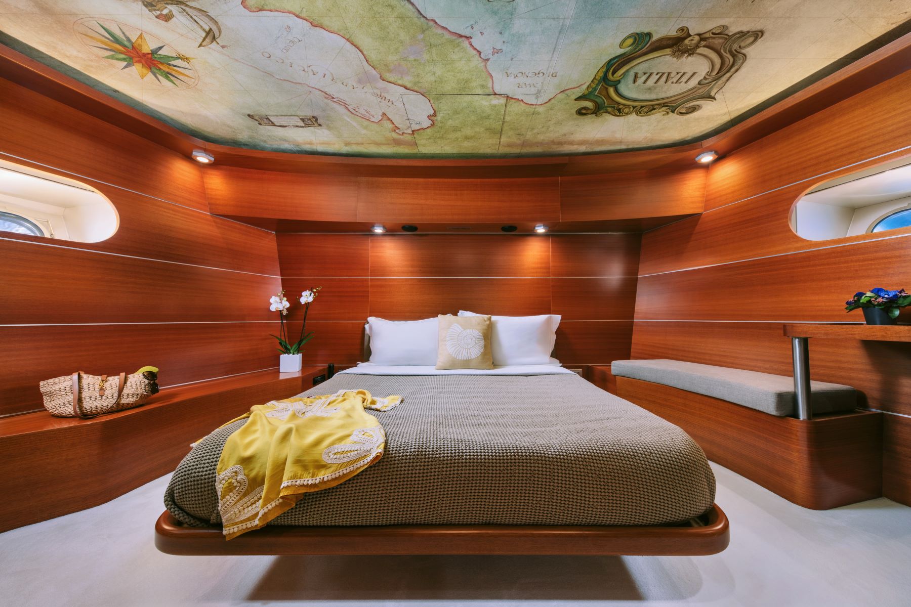 Designed by renowned naval architect Aldo Chichero with interior styling by CNSM, this stunning wooden displacement yacht accommodates up to 12 guests across 5 beautifully appointed cabins.