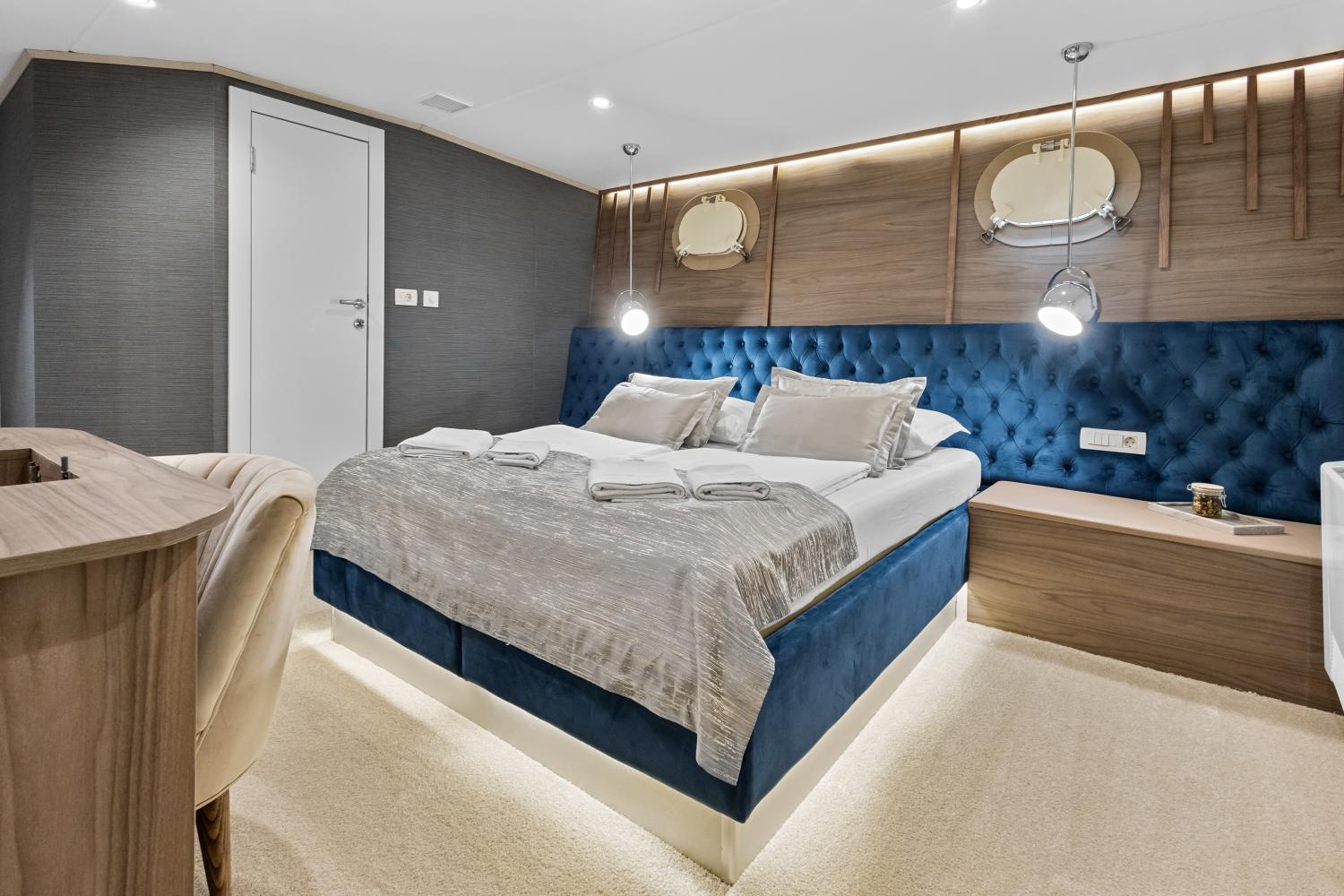 Her generous beam of 8.5 meters provides exceptional stability and expansive outdoor living areas that maximize the Mediterranean charter experience.