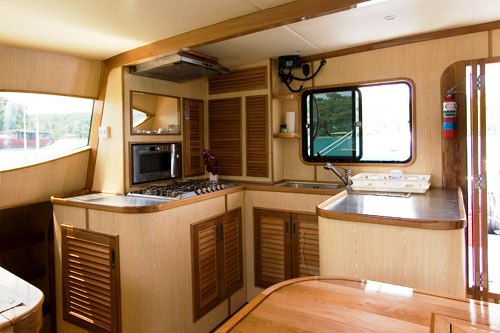 In the Galley opposite, you will be able to watch the Thai chef preparing a sumptuous meals. The 4 guest cabins below deck are airy and spacious with ample space for your personal belongings and plenty of ventilation from the electric fan to keep you cool. The toilets are electric and MAYA has a water maker on board.