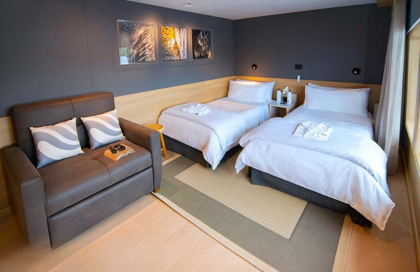 The sun deck combines contemplation and sociability with a Jacuzzi, panoramic loungers, BBQ station, and shaded dining tables—ideal for leisurely meals under the sky. One level below, the upper deck offers a dedicated massage ...