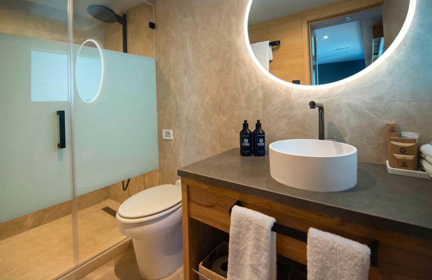 ~ Owner’s Suite: 50 m² with king ward‑robe, seating lounge, double vanity bathroom, binoculars, and panoramic views.