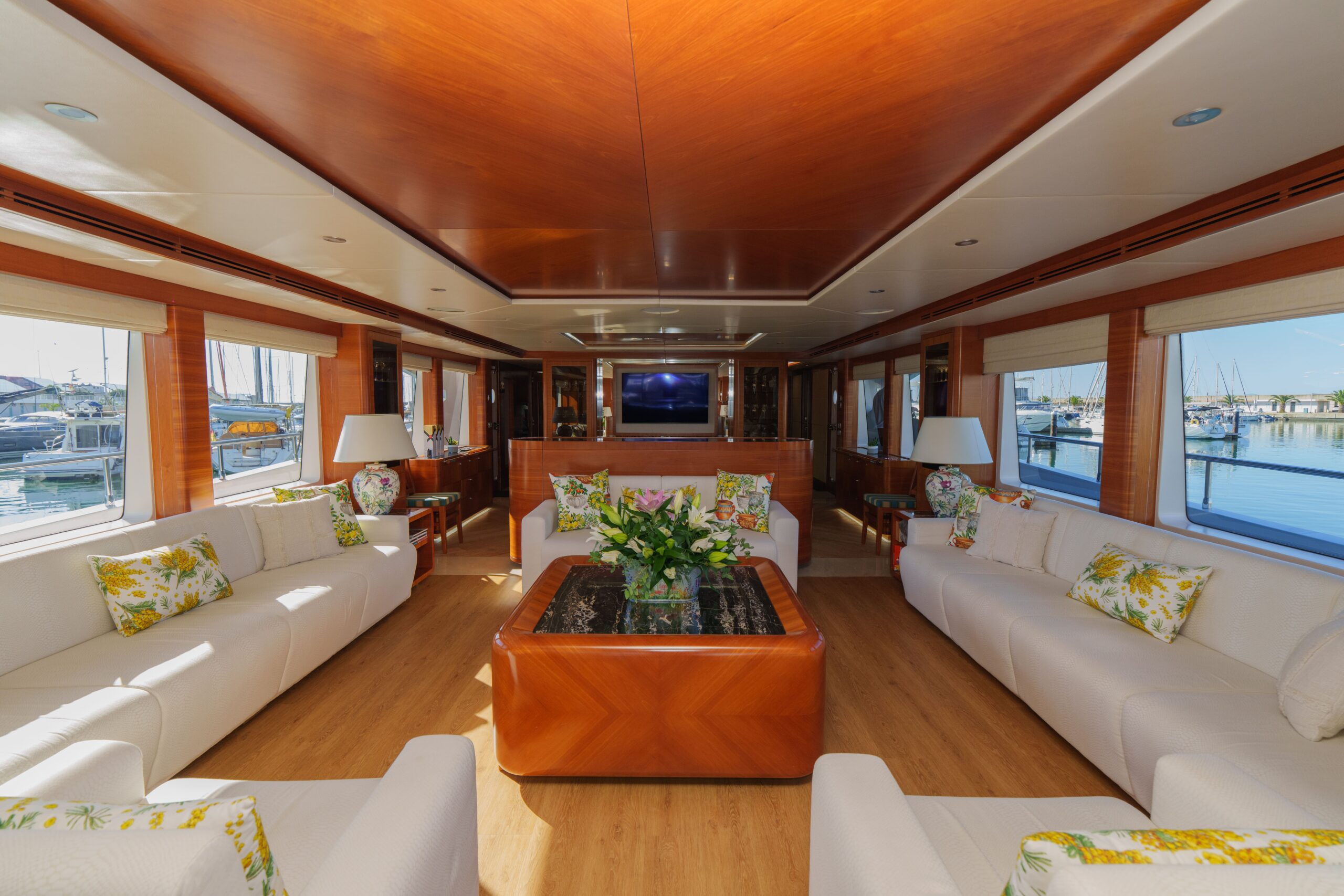 The foredeck delivers a further quiet sunbathing zone, perfect for morning lounging under gentle breezes.