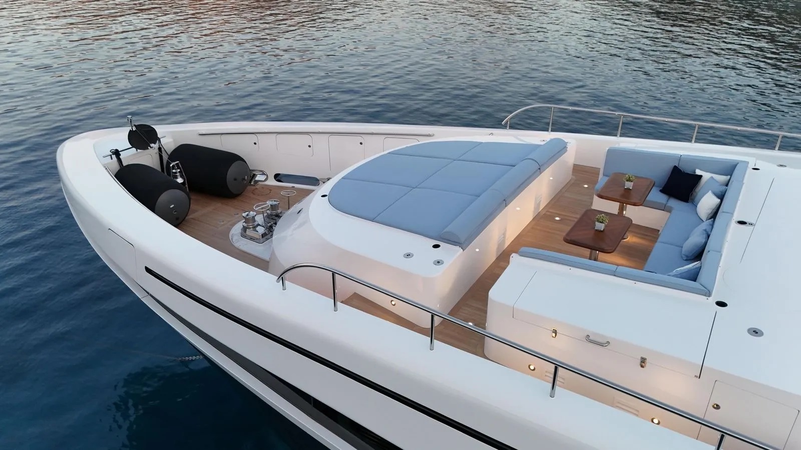 The upper aft deck provides an elegant alfresco dining area, while the foredeck and main deck aft offer additional spaces for lounging and entertaining. A large beach club sits aft at water level, providing seamless access to the ...
