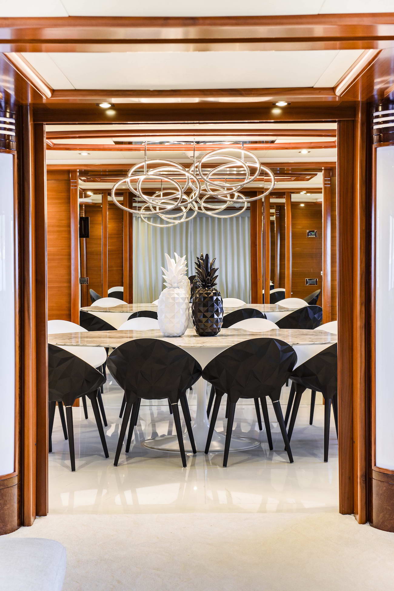 Her contemporary and stylish white and grey coloured interior boasts special pieces such as the exquisite dining table made of white marble. The yacht is fitted with the latest technologies including plasma screens and DVD ...