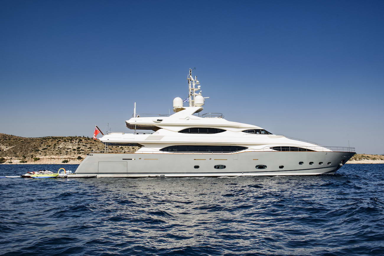 M/Y LIBERTAS (ex Lady Belmor) is a 2009-built 39.60m (129' 11") CRN custom line 128 semi-displacement motor yacht built by CRN Ancona, with interior design by Zuccon International Project. At a length of almost 40 metres, and a width of 7.7, LIBERTAS can accommodate 12 charter guests in five cabins and a crew of 9.