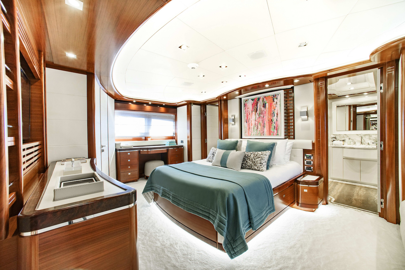 Her contemporary and stylish white and grey coloured interior boasts special pieces such as the exquisite dining table made of white marble. The yacht is fitted with the latest technologies including plasma screens and DVD ...