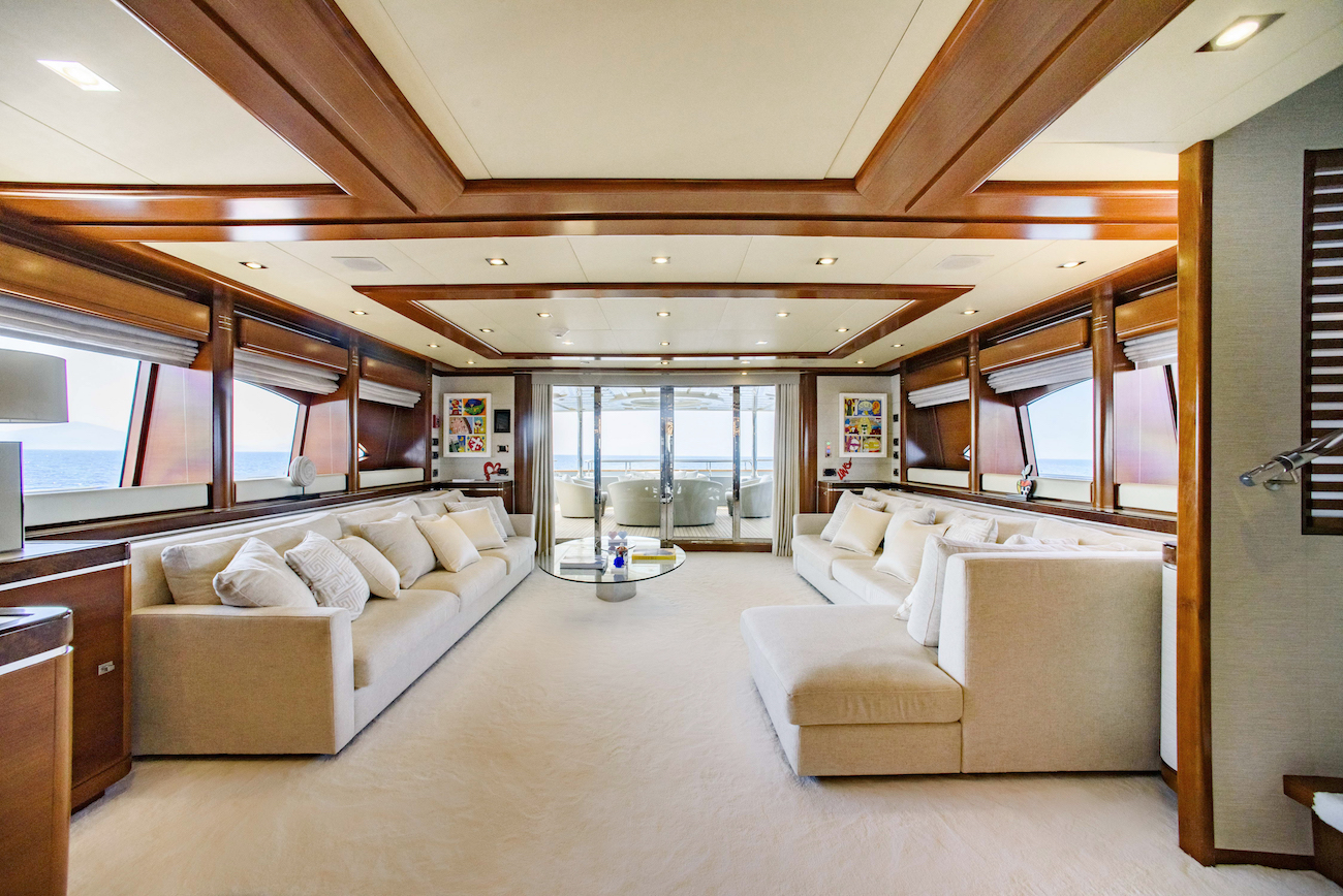 Further forward is the formal dining area that can be separated from the Salon via a sliding door. All the way forward on the main deck is the impressive master cabin. On the upper level, the beautiful upper salon is a great place to relax with a comfortable seating, a bar and entertainment area.