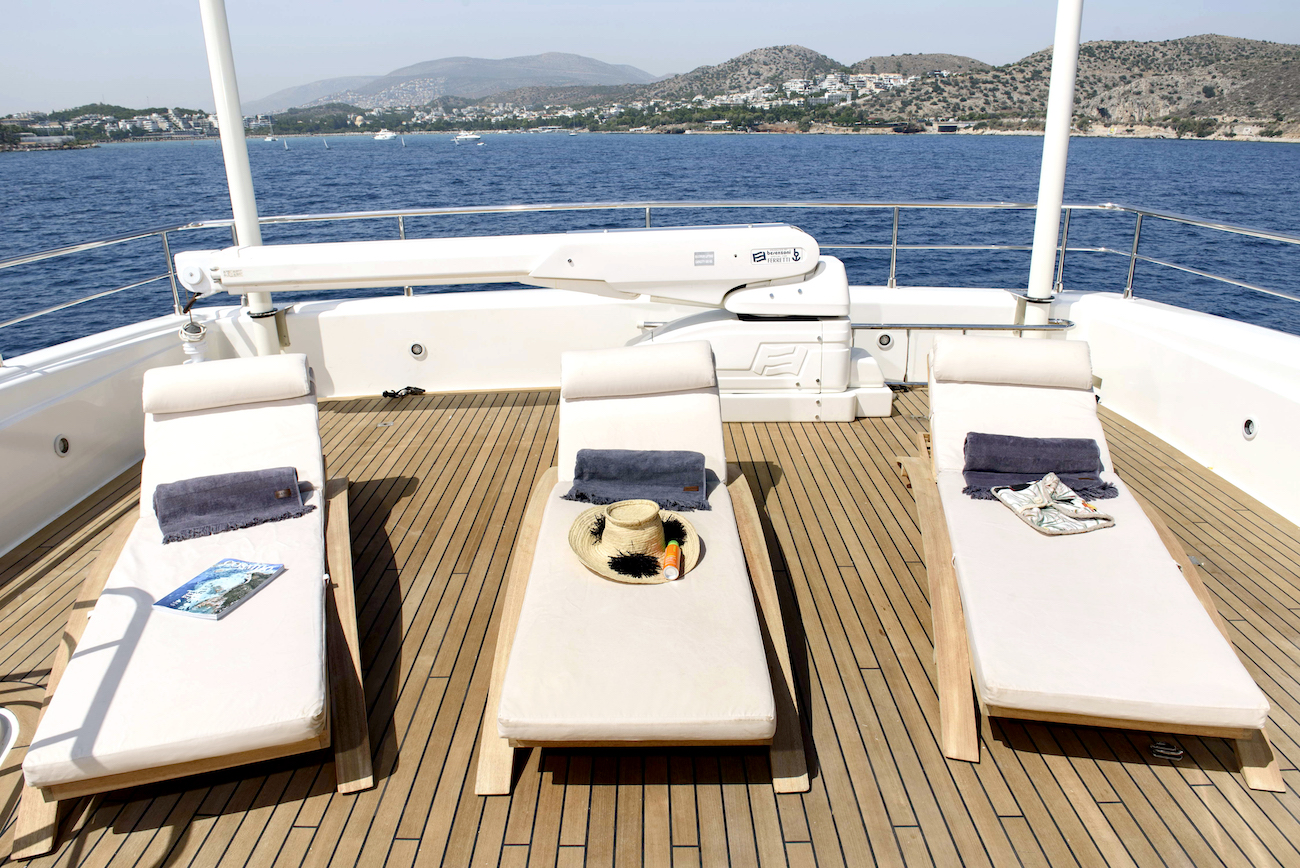 The yacht is fitted with the latest technologies including plasma screens and DVD players in all cabins, iPod stations, Internet, full music entertainment system and more.