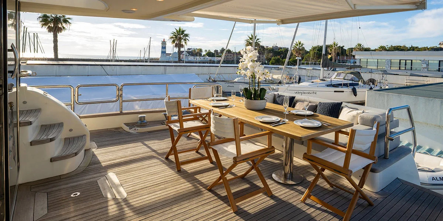 The broad aft swim platform backs on to a large lounging area, creating a hub for water encounters. Meanwhile, the upper deck features expansive open space, perfect for soaking up the sunshine.