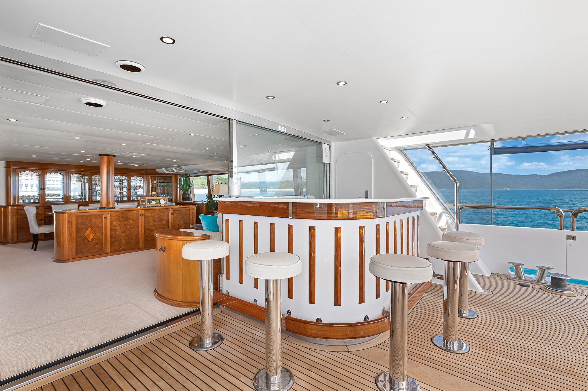 Notable Features: On deck Jacuzzi ~ Full beam master cabin on the lower deck & full beam VIP cabin on the main deck ~ On deck wet bar ~ Two alfresco dining areas ~ Large swim platform ~ Wi-Fi