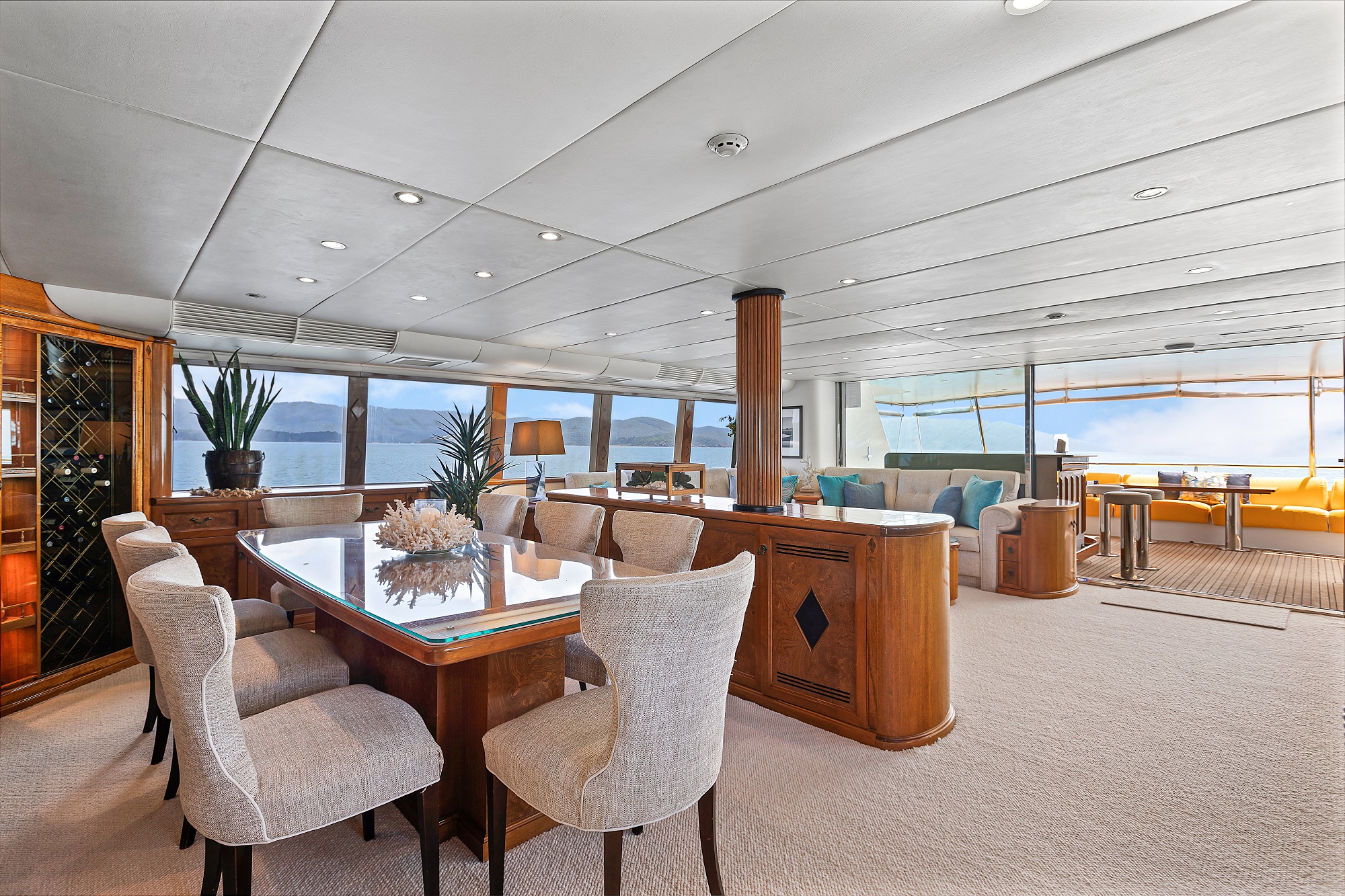 The spacious aft deck with the bar pictured below is the perfect place to enjoy a cocktail while watching one of the many spectacular sunsets or perhaps enjoy an informal al fresco meal. The transom which is accessed via the aft ...