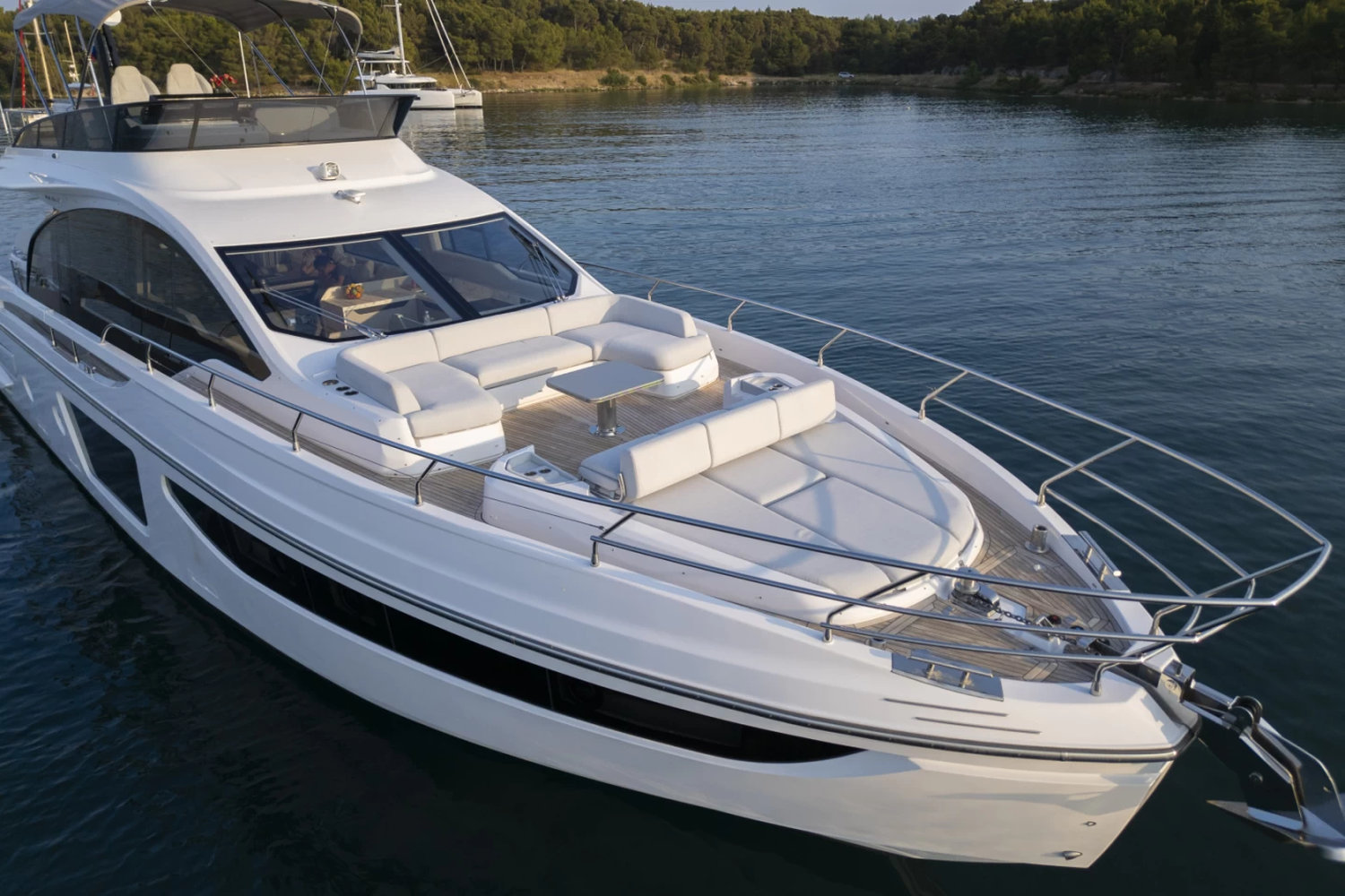 Built by the renowned Italian shipyard Azimut and launched in 2024, the sleek 21.65m motor yacht FELICITA is a stylish addition to the Mediterranean cruising scene. With her lightweight carbon fibre construction, planing hull and triple Volvo Penta engines, she offers speed and agility combined with exceptional comfort.