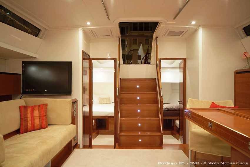 CNB Bordeaux 60 Sailing Yacht DISCO INFERNO is a brand new 60 foot performance cruiser built by CNB in Bordeaux and designed by Philippe Briand. She was launched in 2008 and is the first “Bordeaux 60” offered for charters in the Caribbean and the Mediterranean.