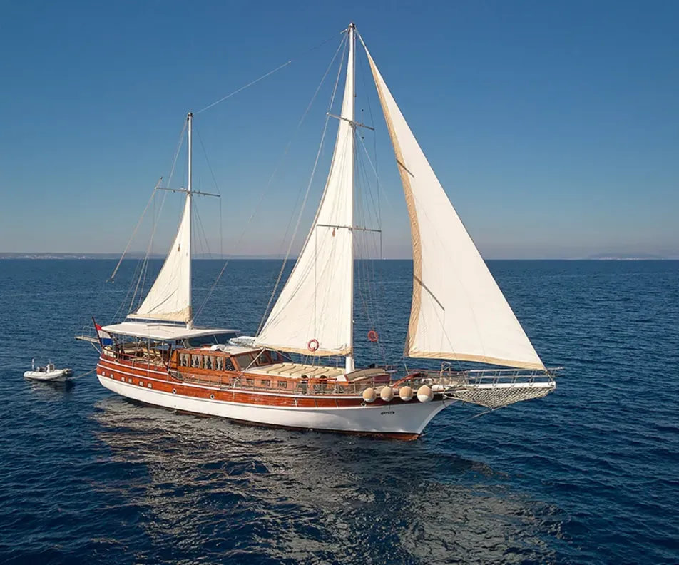 Inspired by traditional craftsmanship and tailored for the discerning traveller, ALLURE E is a meticulously restored 28.70 metre gulet built in 2011 by Custom Shipyard. Recently refitted in 2021, she presents a handcrafted mahogany interior that radiates timeless elegance and warmth.
