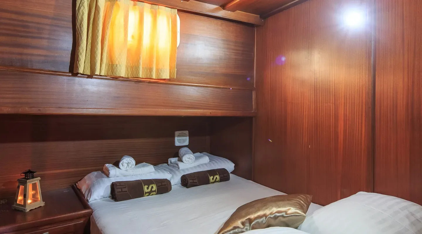 With accommodation for up to 14 guests across seven individual ensuite cabins, tended by a professional crew of four, she offers both seafaring grace and intimate hospitality.