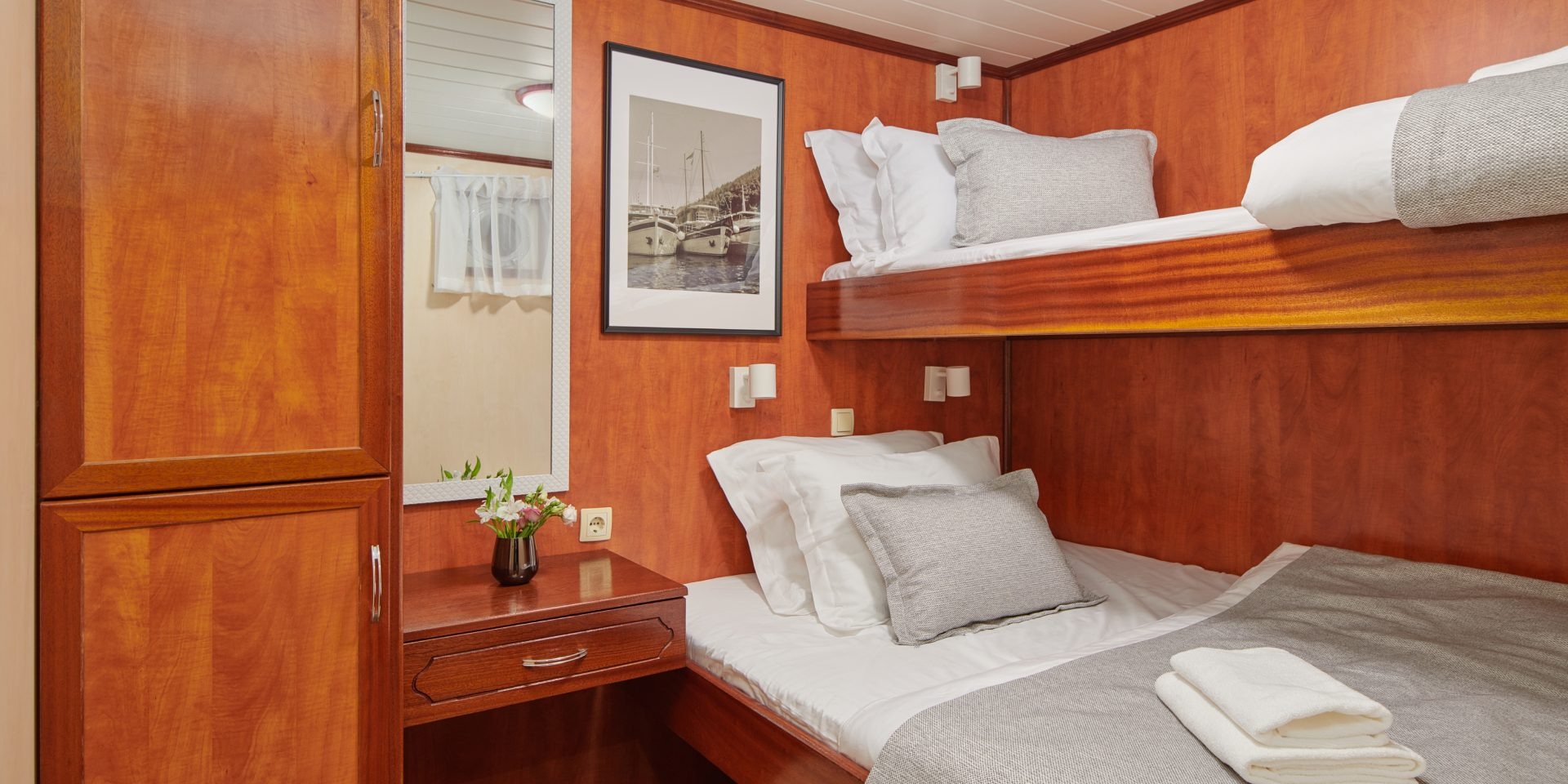 With nine fully air-conditioned ensuite cabins accommodating up to 21 guests, and tended by a devoted crew of six, her ambiance is both stately and inviting – perfect for extended cruising along the Adriatic coast.
