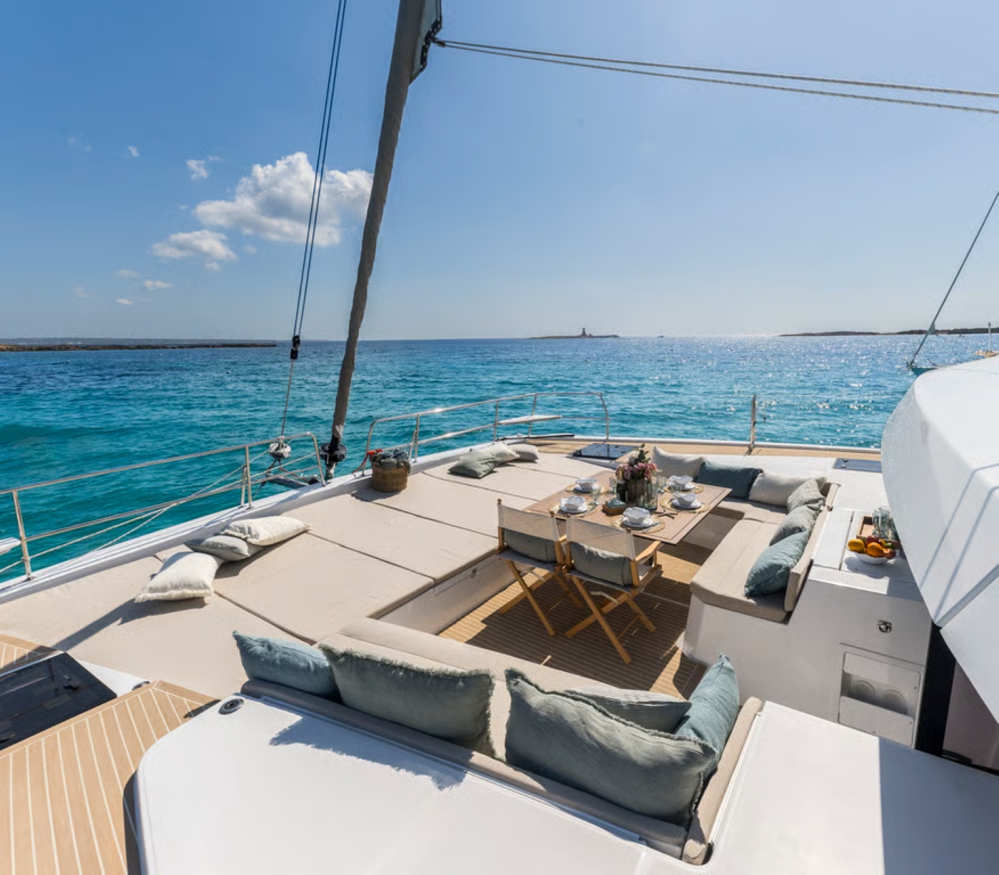 Designed to accommodate up to 8 guests across 3 double cabins and 1 twin cabin, she is served by a professional crew of three – perfectly poised to spoil her guests with attentive, intuitive service.