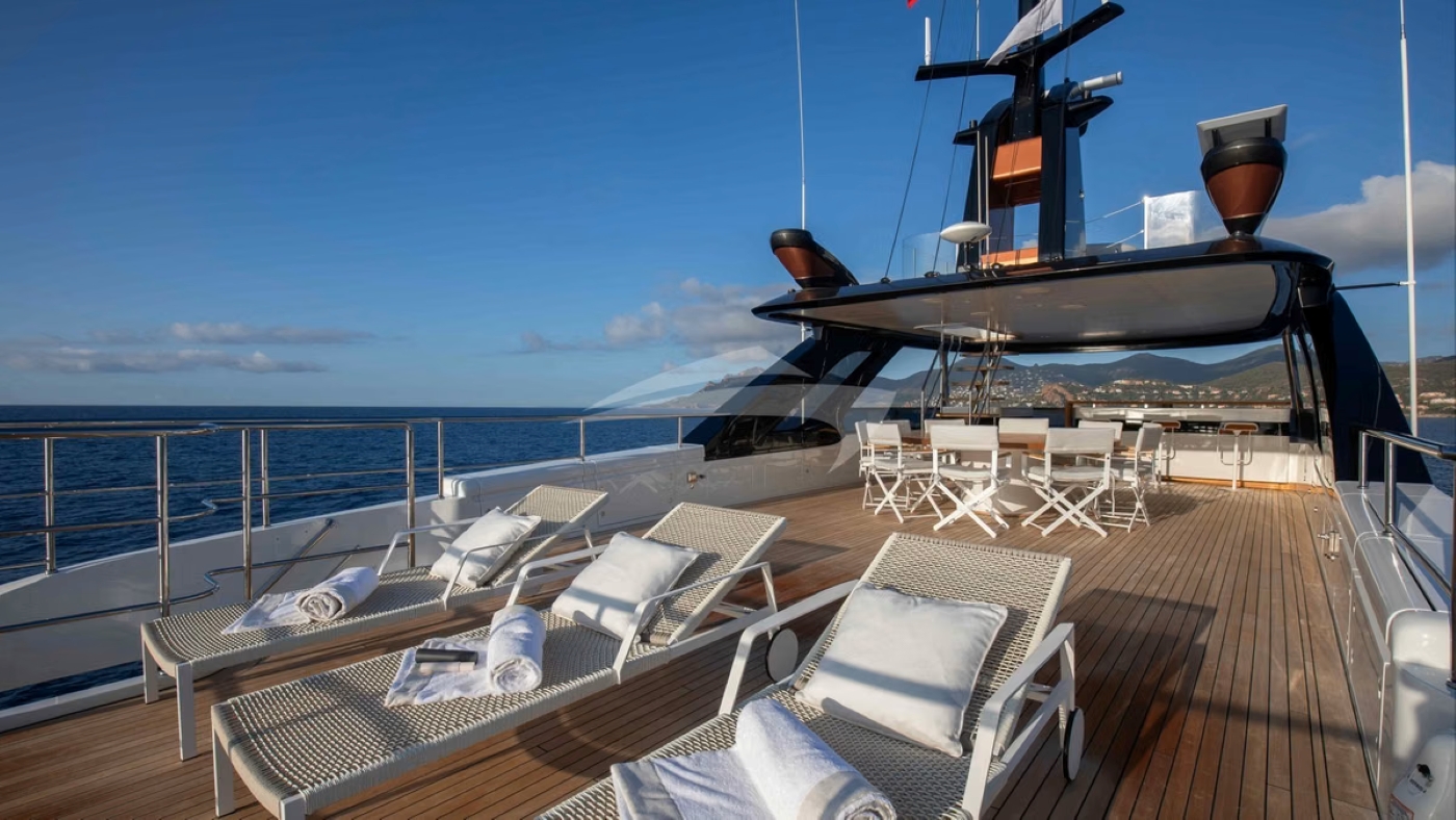 The interior mood is sophisticated yet laid-back – ideal for unwinding after a day on the water.