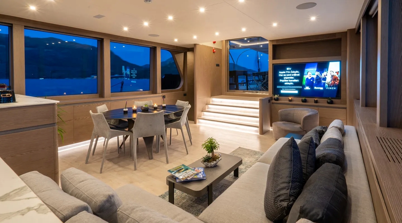 Accommodating 10 guests in five double cabins, GOOD LIFE is maintained by a professional crew of six, ensuring impeccable service on board whether underway or at anchor.