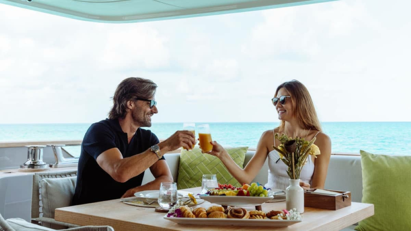 With a striking foredeck jacuzzi, expansive alfresco spaces and a fresh interior palette, ADIOS offers a boutique-style yachting experience with seamless indoor–outdoor living.