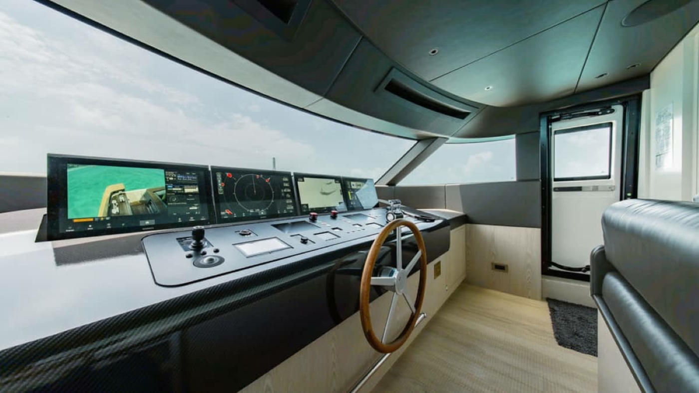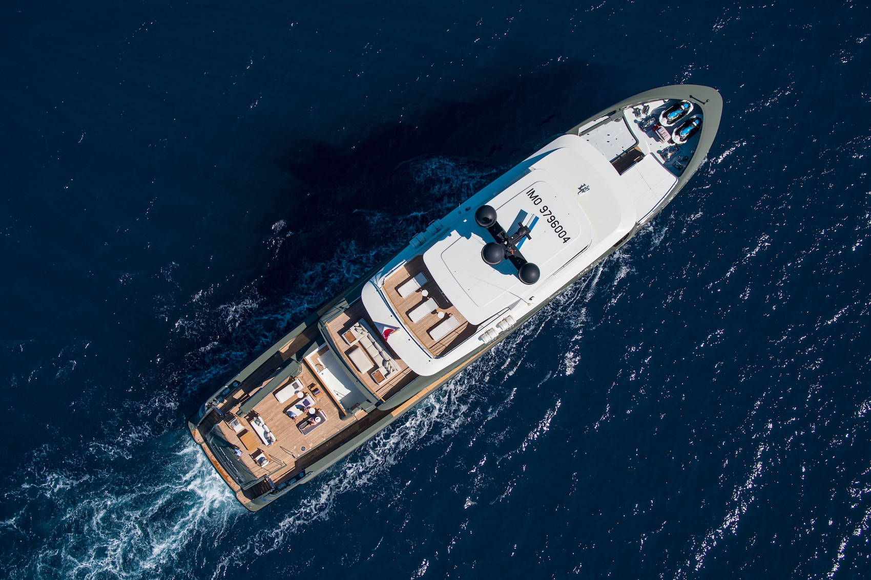 Underwater lights enhance the atmosphere when anchored after dark, adding to her visual impact.