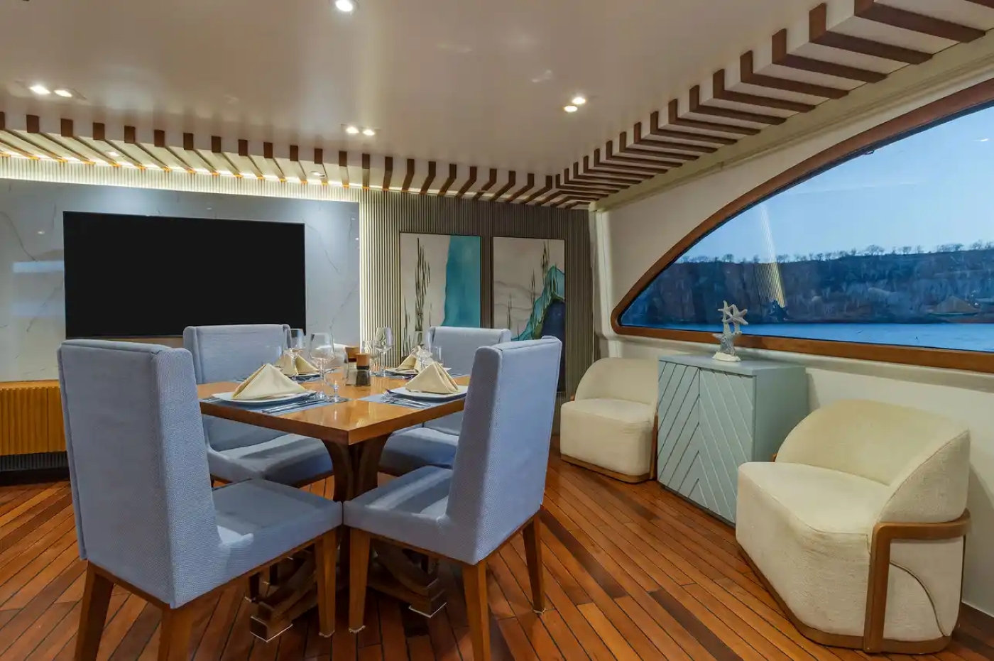 Launched in 2011 and custom-designed for cruising the archipelago, she stretches a stately 34 metres (113 ft) in length with a broad beam of 13 metres, delivering exceptional stability and generous living spaces ...