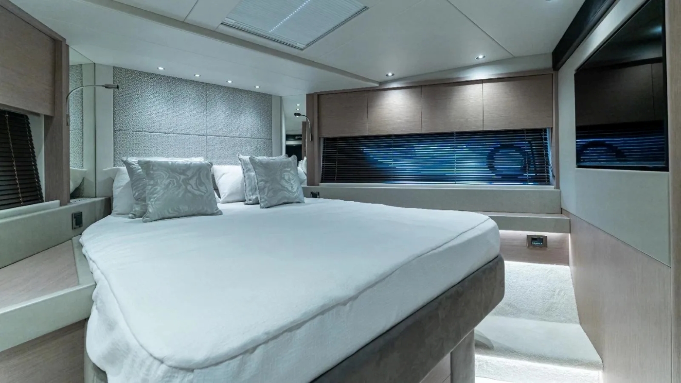 Fresh interiors with ambient lighting and high-end finishes provide a stylish retreat after a day on the water, while stabilisers underway and at anchor ensure maximum comfort at all times.