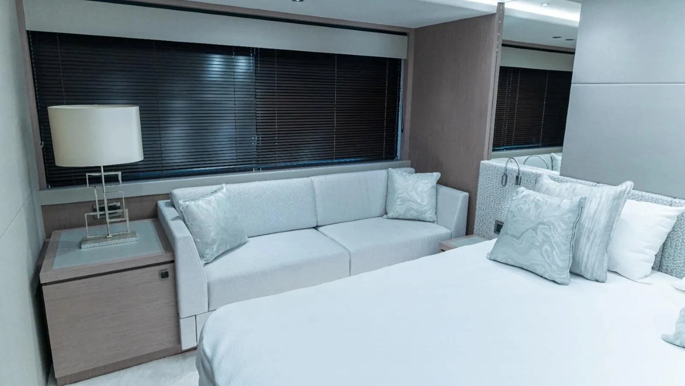Fresh interiors with ambient lighting and high-end finishes provide a stylish retreat after a day on the water, while stabilisers underway and at anchor ensure maximum comfort at all times.