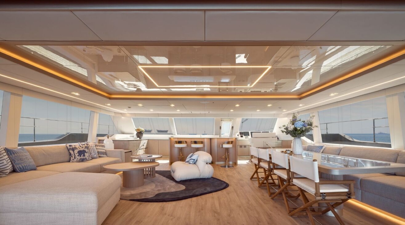 From her spacious decks and panoramic glazing to her solar assisted systems and deck jacuzzi, this yacht delivers refined comfort with a conscientious footprint.