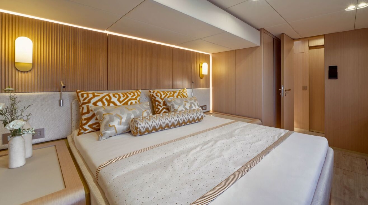 From her spacious decks and panoramic glazing to her solar assisted systems and deck jacuzzi, this yacht delivers refined comfort with a conscientious footprint.