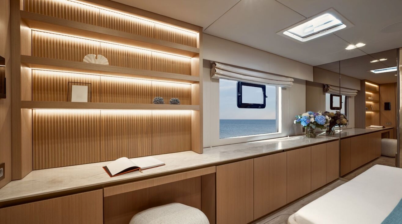 The flybridge deck serves as a focal point—with lounge seating, sun pads and multiple conversation zones—ideal for sunset drinks or conversation under open sky. The deck jacuzzi offers a spa-like vantage point over sea and ...