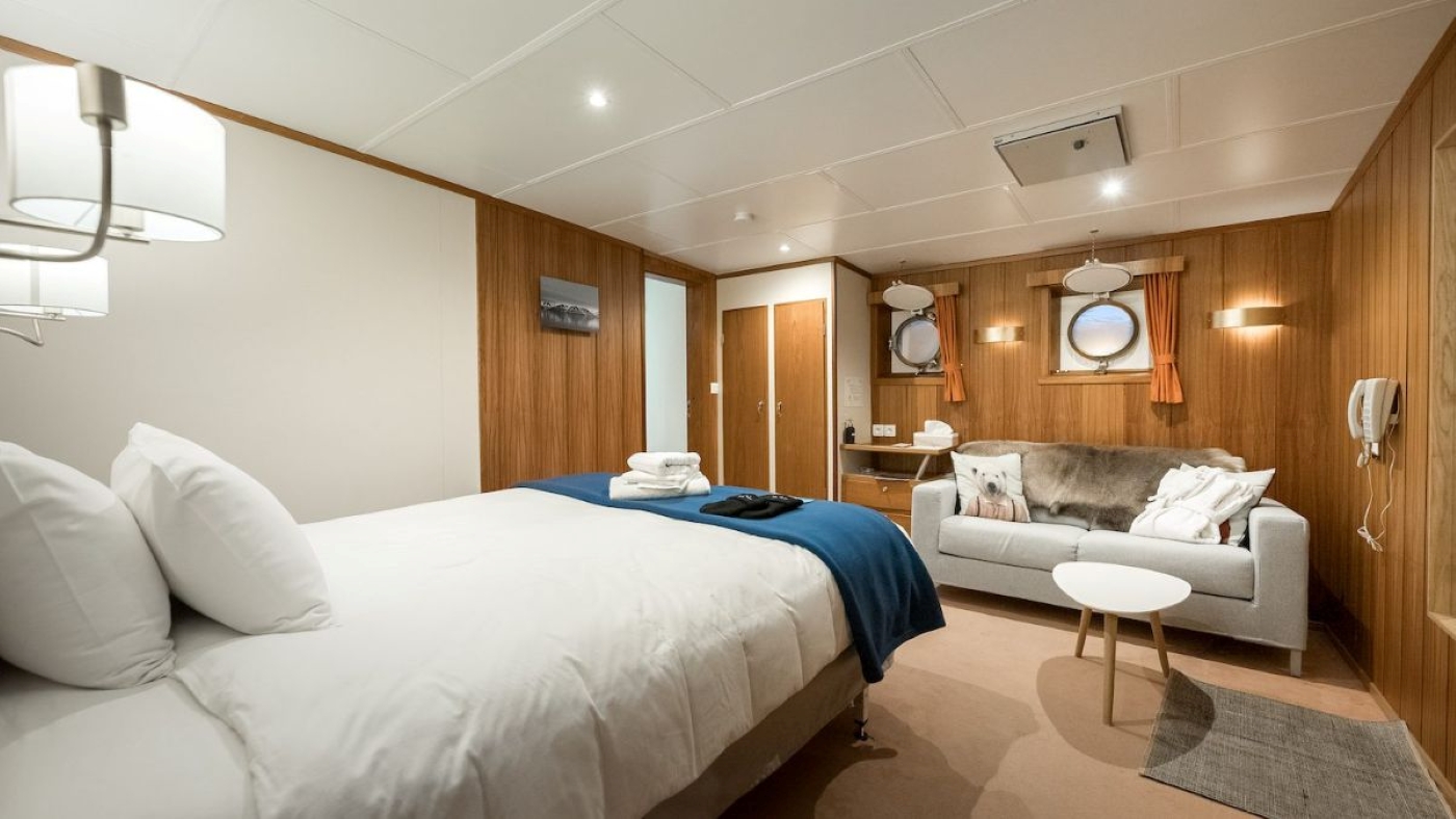 POLARFRONT accommodates up to 12 guests in 8 cabins, configured as follows: