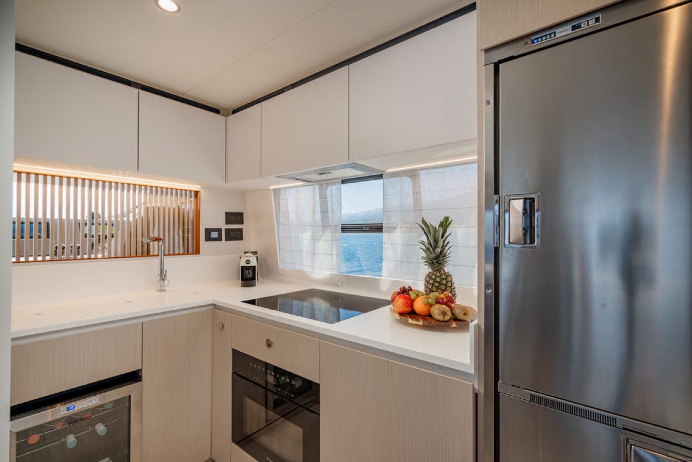 NOTABLE FEATURES OF SBK: ~ Floor to ceiling glazing throughout main deck saloon for panoramic views ~ Spacious flybridge with sunbathing, dining and lounge zones ~ Bow lounge convertible from sofa to full sun pad ~ Elegant ...