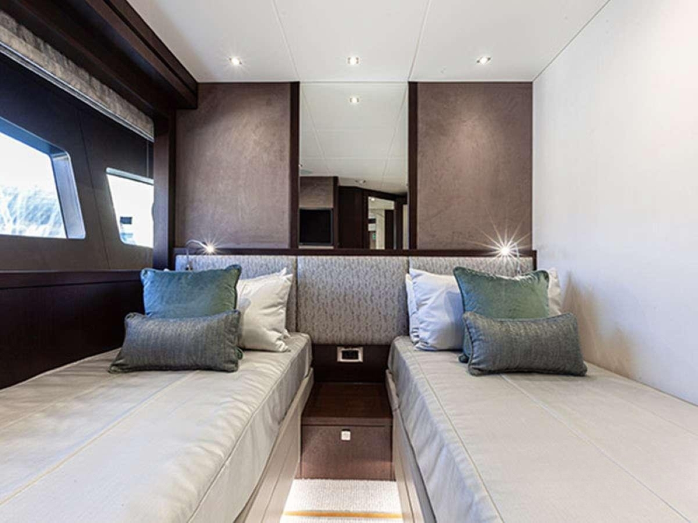 With her modern lines, semi displacement hull and dynamic profile, she accommodates up to 10 guests in five spacious ensuite cabins, supported by a professional crew of four. Her elevated exterior deck zones and elegantly ...