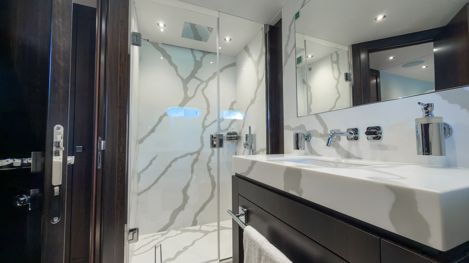 With her modern lines, semi displacement hull and dynamic profile, she accommodates up to 10 guests in five spacious ensuite cabins, supported by a professional crew of four. Her elevated exterior deck zones and elegantly ...