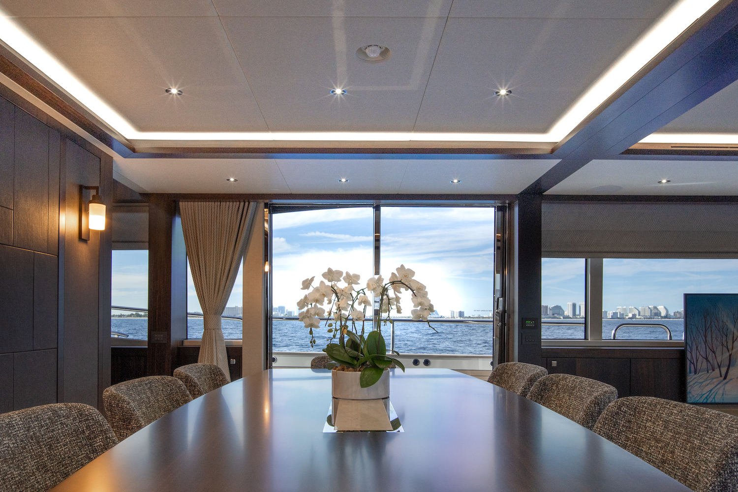 Her elevated exterior deck zones and elegantly designed interiors cultivate an atmosphere of contemporary sophistication while retaining the warmth and ease of a luxury yacht.
