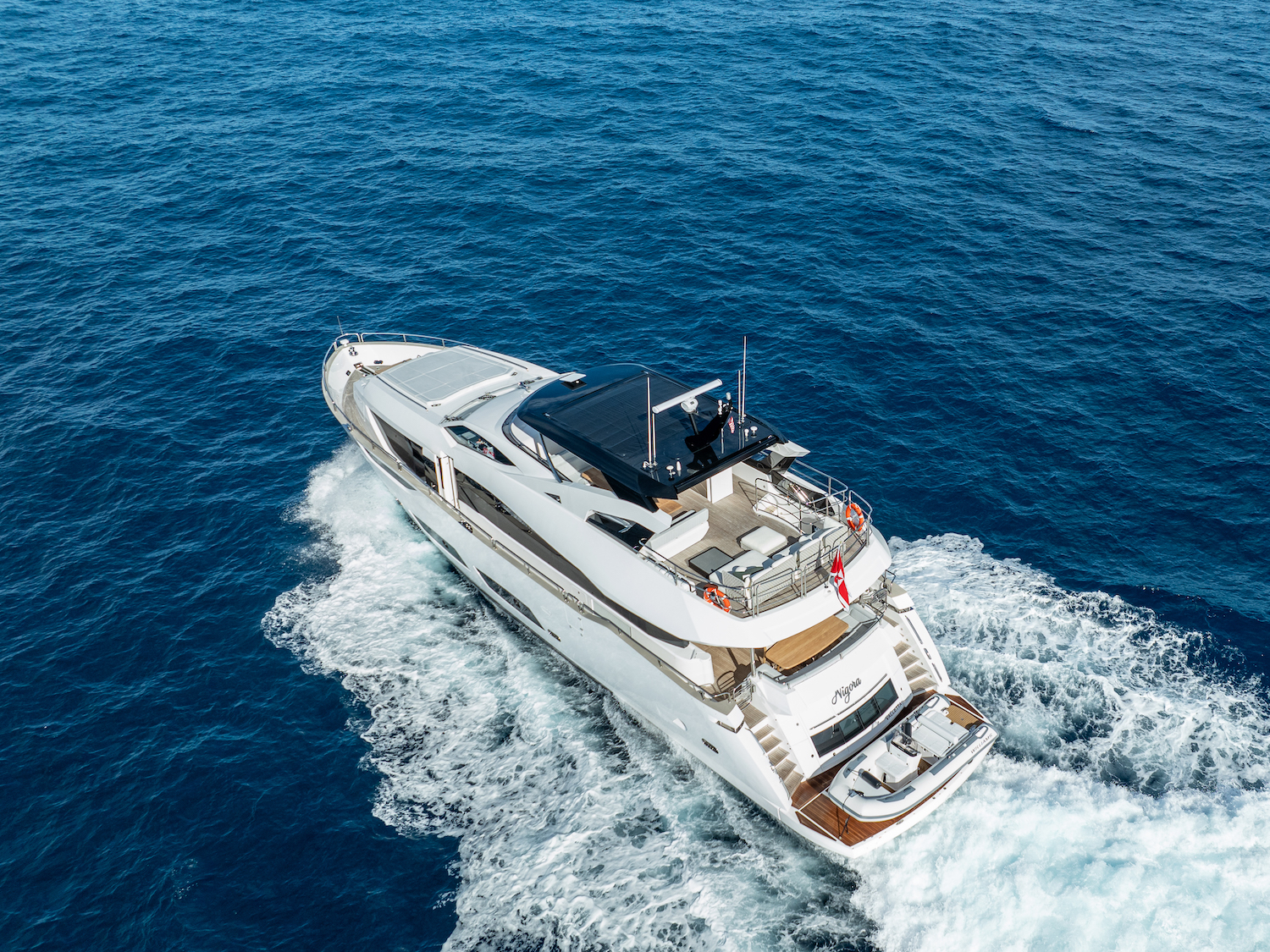The foredeck offers a private lounge of sun pads where guests may bask in the open air or share quiet moments ahead of the helm station. Moving aft, the main deck cockpit provides an alfresco dining zone just steps from the sea, ...