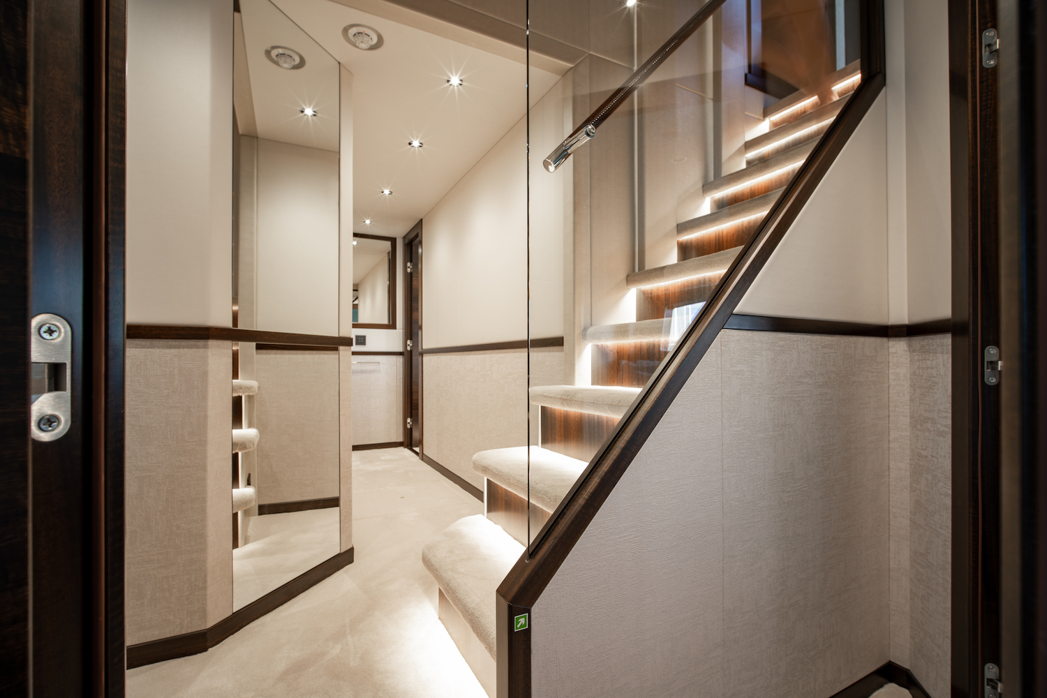 Built for spirited cruising yet refined enough for gentle afternoons at anchor, the yacht’s profile balances motion with comfort and the elevated pilot house grants excellent visibility underway.