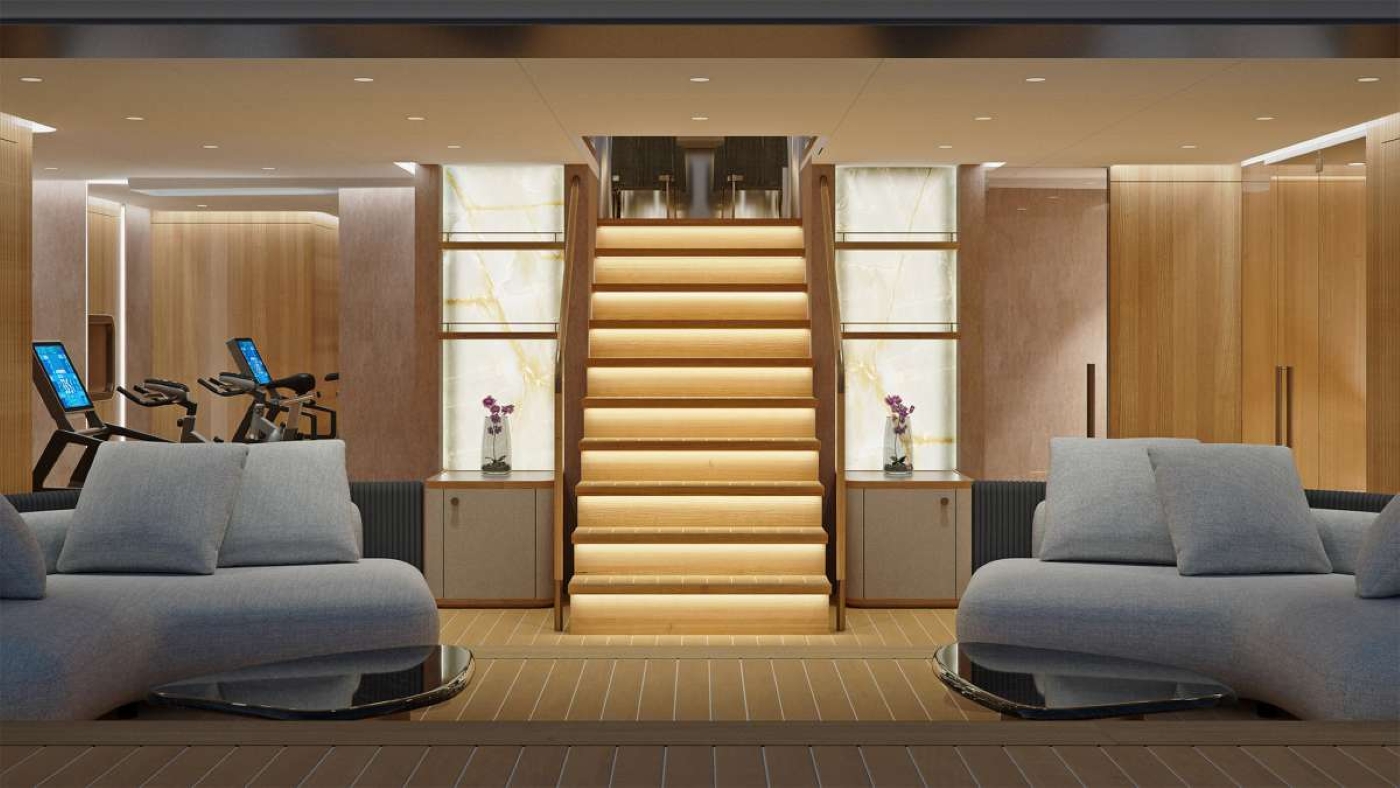 Sun awnings, outdoor bars, and ambient lighting ensure round-the-clock comfort across her open spaces.