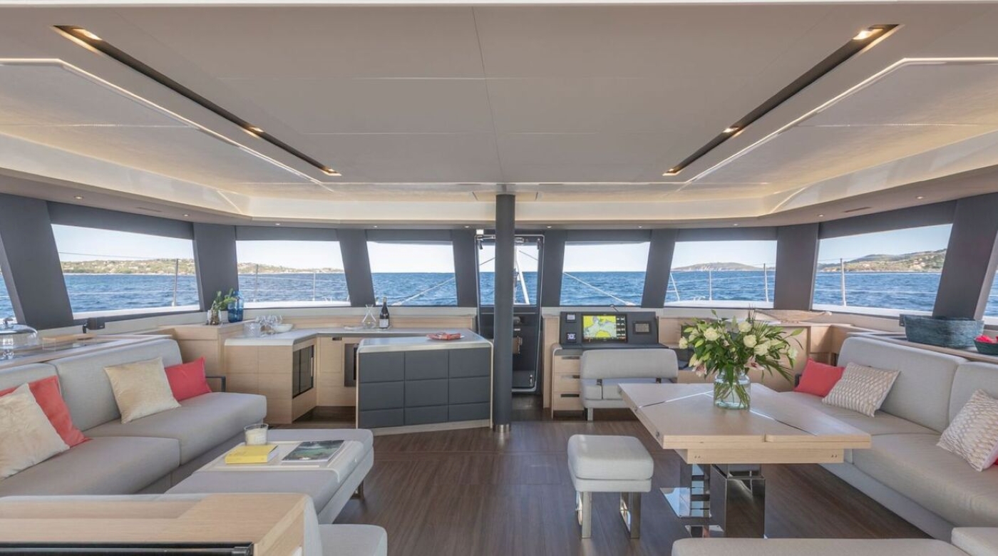 Her expansive aft deck features a large alfresco dining table, wet bar and lounge area shaded by the flybridge overhang. The foredeck offers a rare indulgence: a jacuzzi surrounded by sun pads – an idyllic setting for daytime relaxation or evening cocktails under the stars.