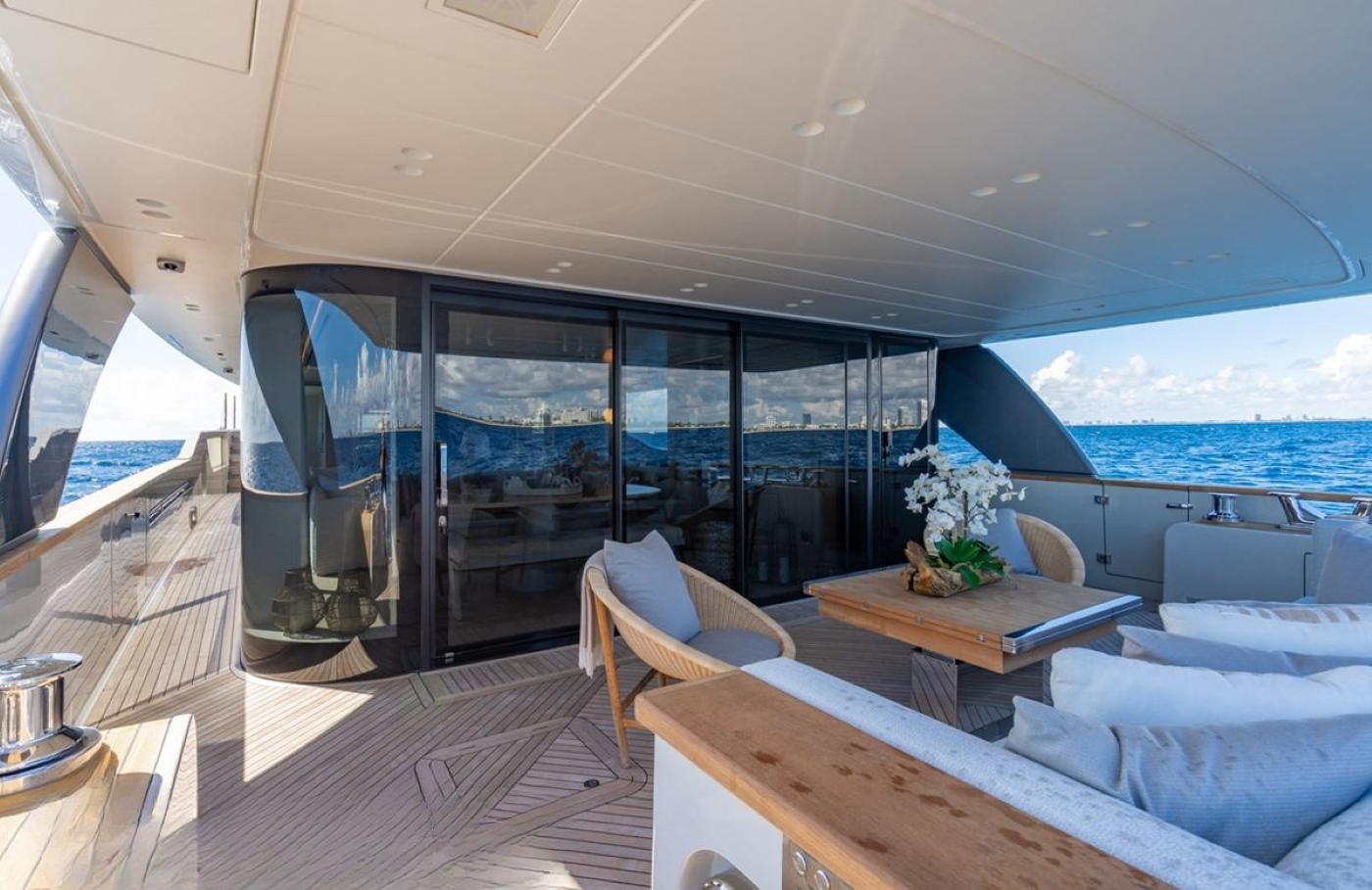 With exterior design by Zuccon International Project and interiors by Patricia Urquiola, this modern yacht reflects a refined design ethos where form meets function. Her spacious layout accommodates up to nine guests in four serene staterooms, supported by a crew of four.