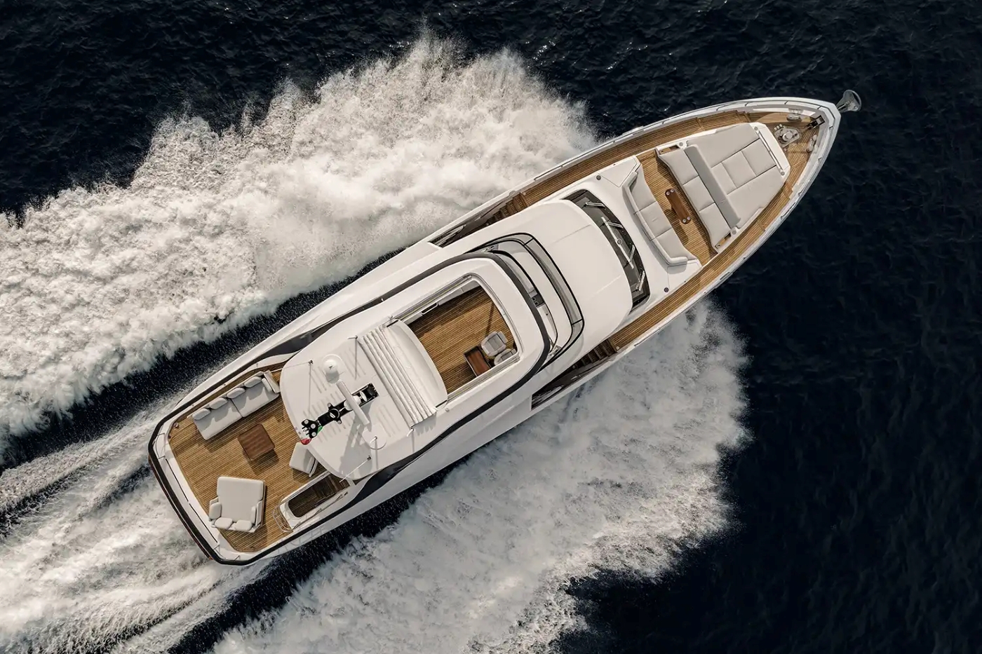 On deck, the flybridge offers an expansive social hub — perfect for lounging, sunbathing or entertaining.