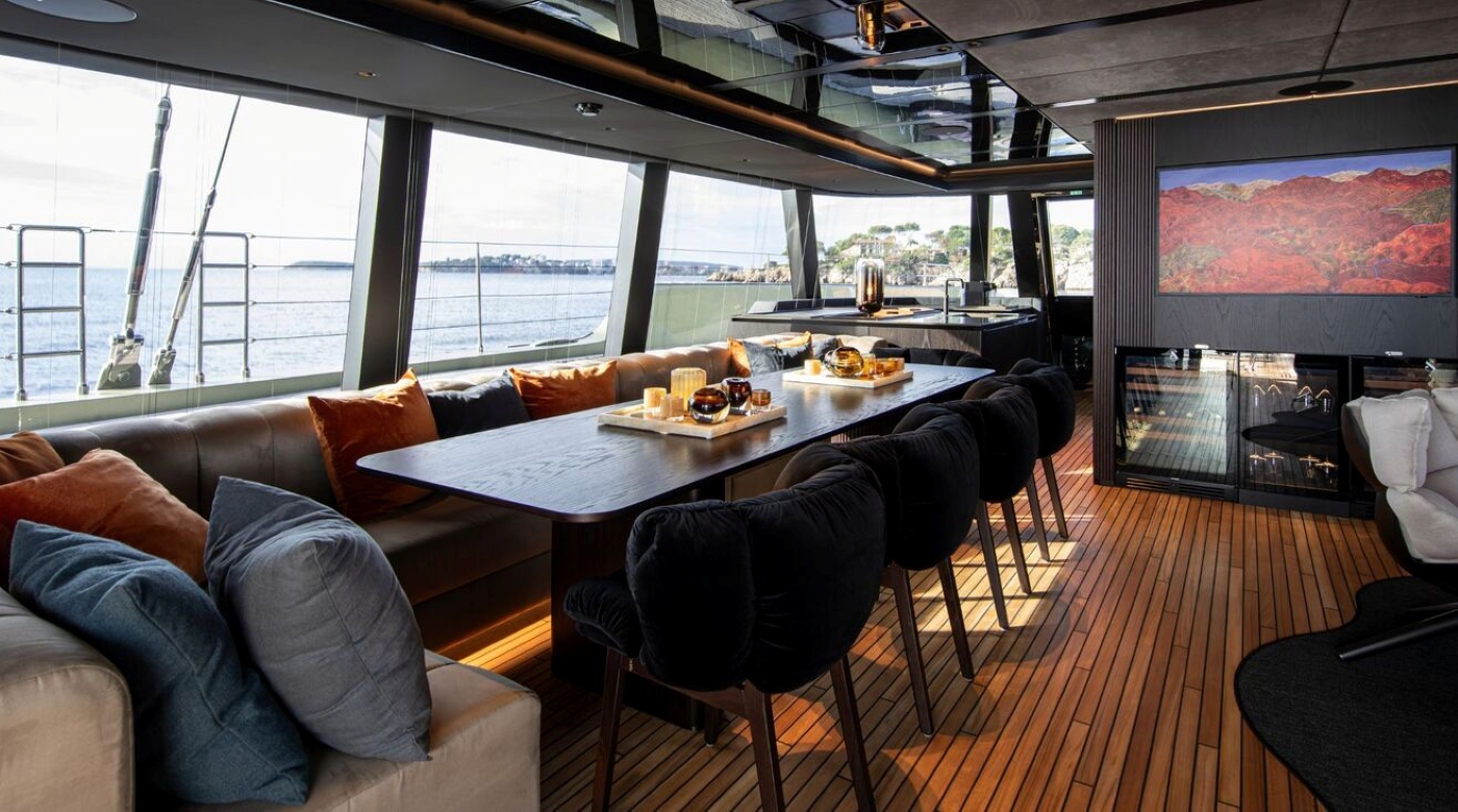 With a striking olive-green hull, expansive flybridge and wide 11.5-metre beam, she offers a lifestyle-driven layout across luxurious indoor and outdoor spaces. Built in composite with a flybridge superstructure, this Sunreef 80 ...