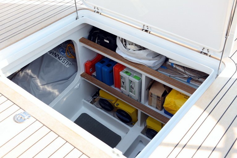 The charter yacht is equipped with a sun dodger over the guest cockpit and a bimini over the steering cockpit for good sun protection. The side windows of the dodger can be opened to allow for air circulation.