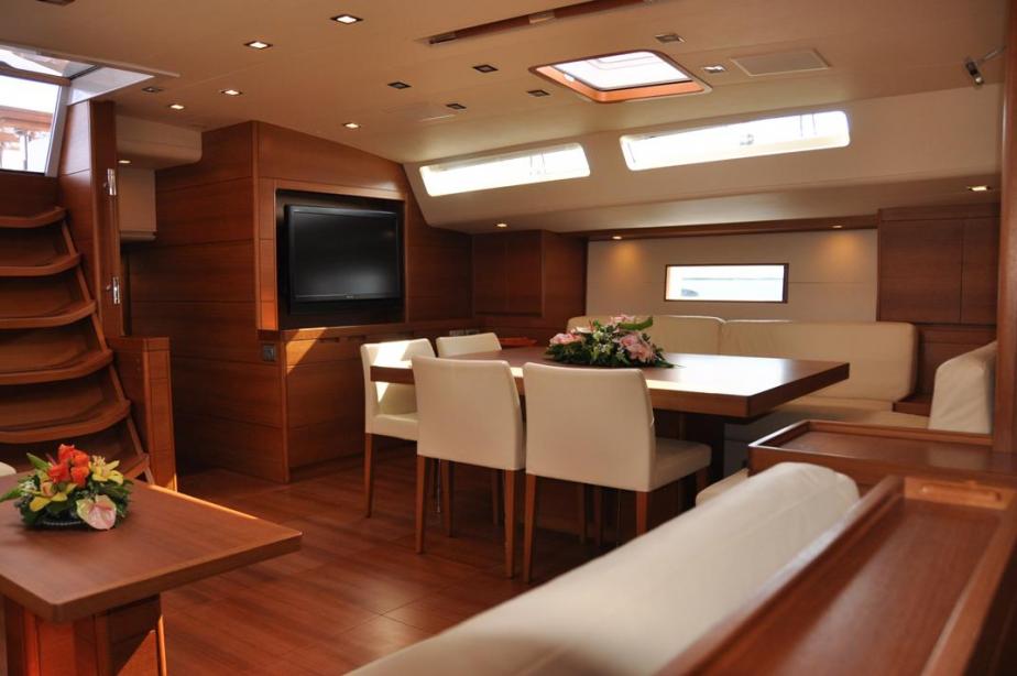Mrs Seven has accommodation for 8 guests. Her Master cabin is forward of the mast and accessible via a studio and she has a double bed, sofa, and ensuite bathroom.
