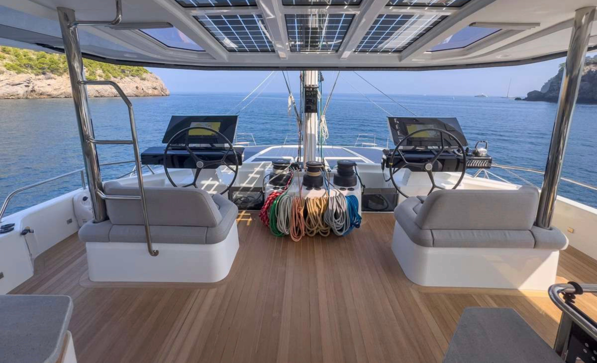 Up on the flybridge there are again multiple seating options and another dining table perfect for sunset cocktails or snacks ...
