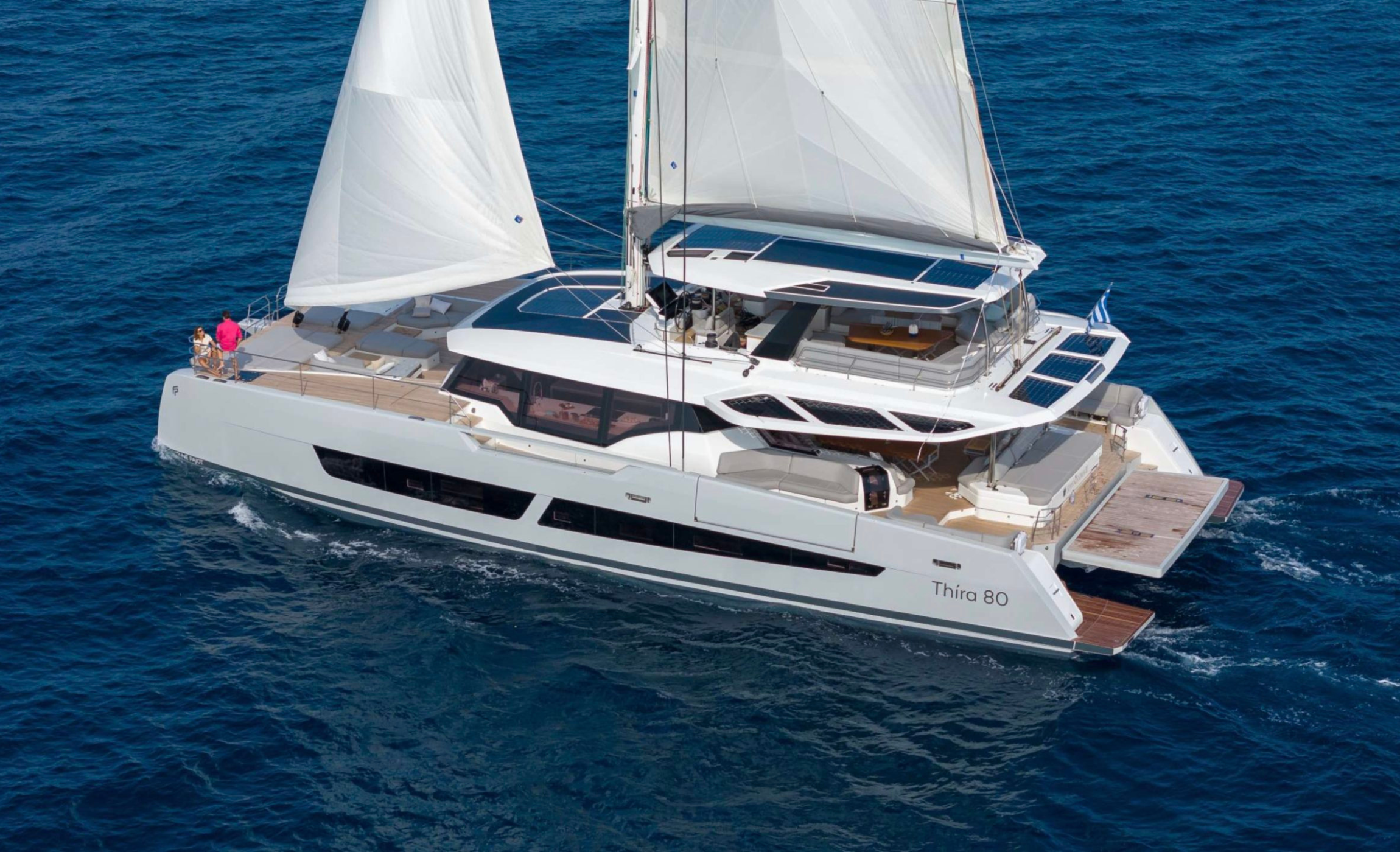 Typical to Fountaine Pajot they have a door that leads directly from the saloon to the foredeck and aft there are double doors which open to spill seamlessly