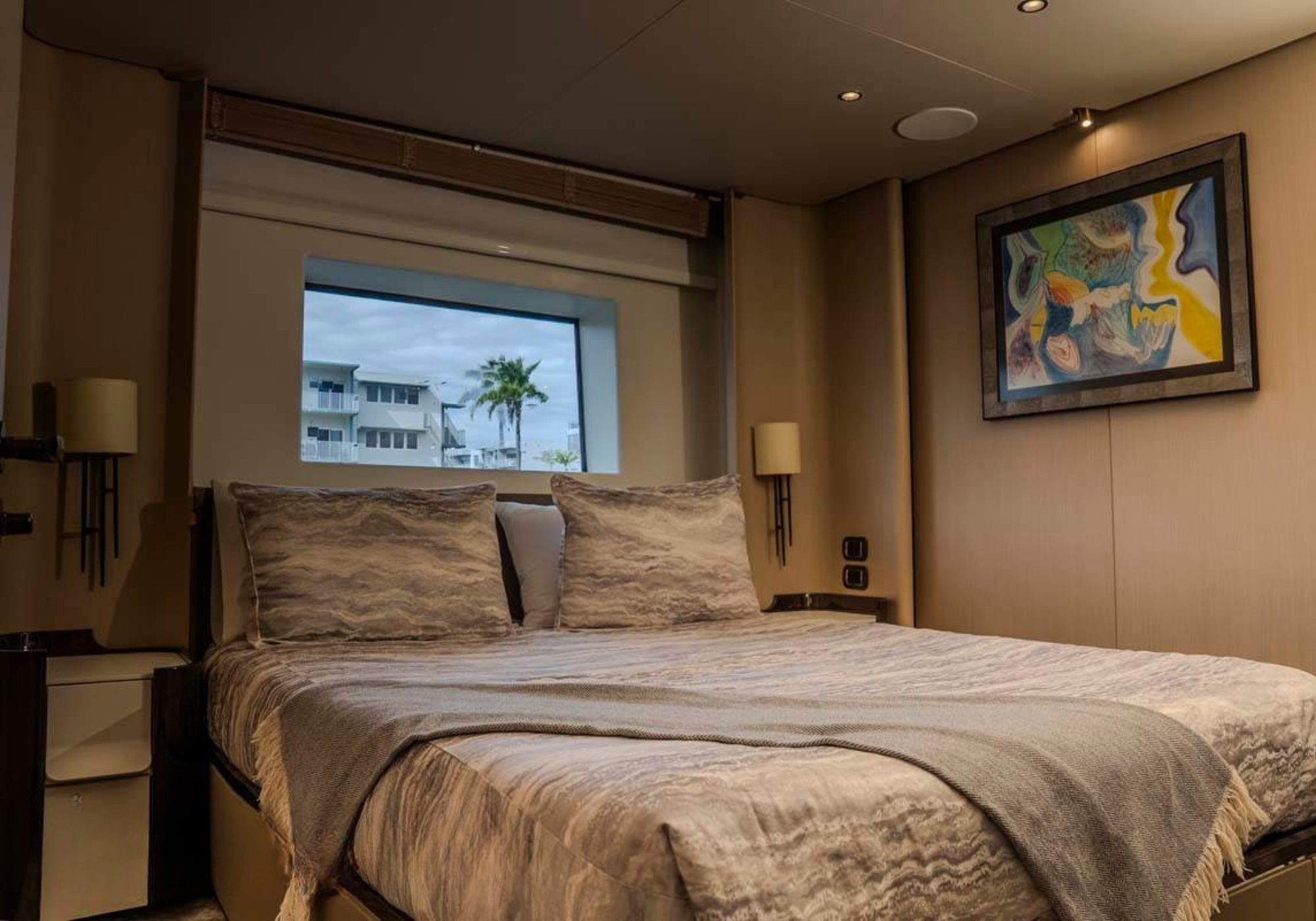 The overall aesthetic is modern yet welcoming, with carefully selected finishes and subtle detailing that elevate the onboard experience.